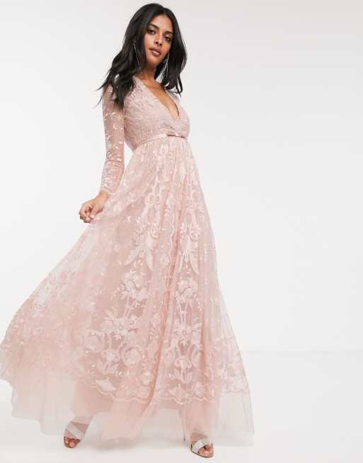 Needle Thread Kanten Maxi Jurk Met Geborduurde Bloemen In Oudroze Asos